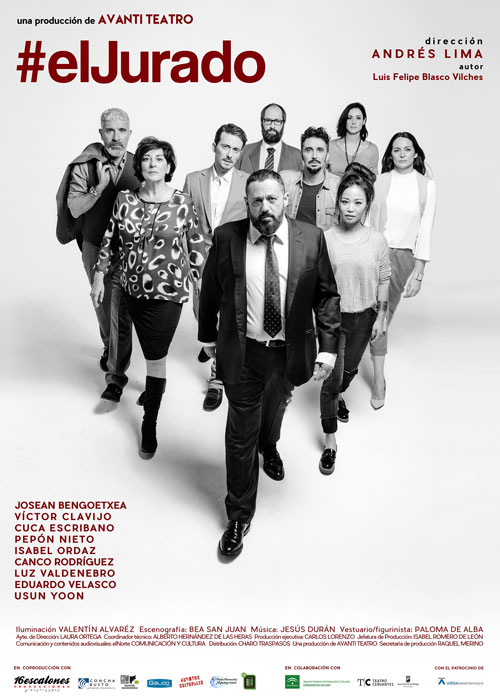 Sumergidos en el teatro social, Avanti nos ofrece una disección de la sociedad española actual, a través de un caso de corrupción municipal (revolotea Gürtel) donde las comisiones por adjudicación de obras públicas es el pan nuestro de cada día en la prensa española, ¿les suena?. Blasco Vilches se inspira en la magnífica “Doce hombres sin piedad” de Reginald Rose pero si tiene algo de esa obra es el veredicto inicial (“culpable”) y la apariencia de “thriller”, el resto poco tiene que ver y ahí es donde está el riesgo de “El Jurado”. Los nueve miembros del jurado son personas con las que nos podemos ver perfectamente identificados: Una señora de la limpieza con su hijo en paro (Isabel Ordaz), una trabajadora social de una ONG (Luz Veldenebro), el tipo sereno y cabal (Eduardo Velasco), el futbolero provocador (Canco Rodríguez), el profesor (Pepón Nieto), el empresario pijo (Victor Clavijo), la doctora en Química (Cuca Escribano), el prejubilado hipotecado (Josean Bengoetxea) y la inmigrante integrada pero poco habladora (Usun Yoon).